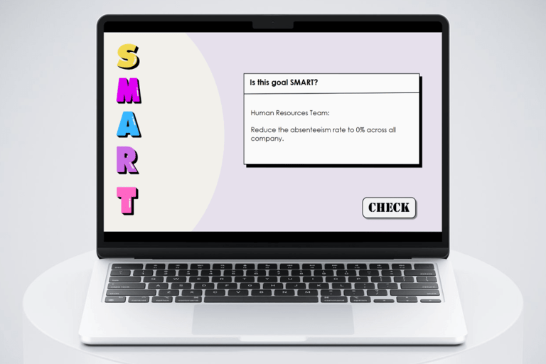 A self-paced e-learning course showing the SMART goals structure and highlighting the common pitfalls when setting goals.